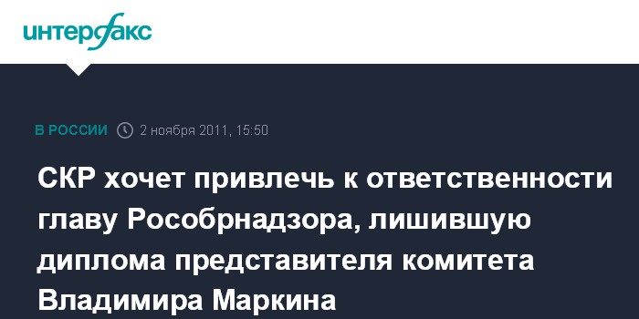 СКР хочет привлечь к ответственности главу Рособрнадзора, лишившую диплома представителя комитета Владимира Маркина
