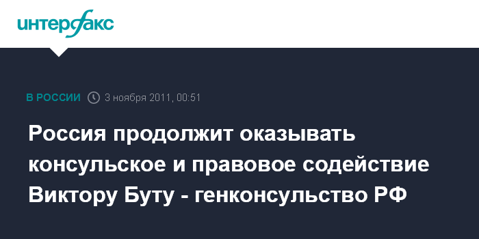 Россия продолжит оказывать консульское и правовое содействие Виктору Буту - генконсульство РФ