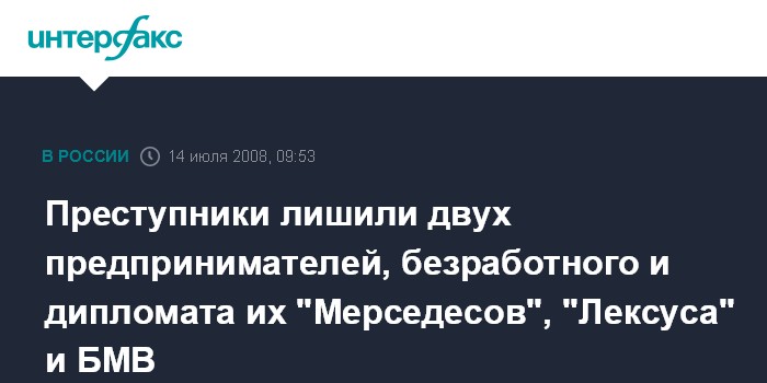 Преступники лишили двух предпринимателей, безработного и дипломата их "Мерседесов", "Лексуса" и БМВ