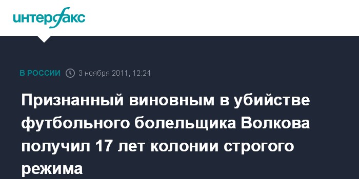 Признанный виновным в убийстве футбольного болельщика Волкова получил 17 лет колонии строгого режима