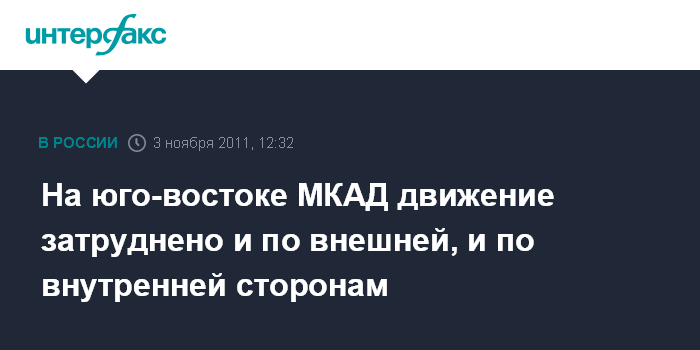 Москва. 3 ноября. INTERFAX.RU – Две серьезные пробки затрудняют движение по юго-восточной части МКАД в обоих направлениях.