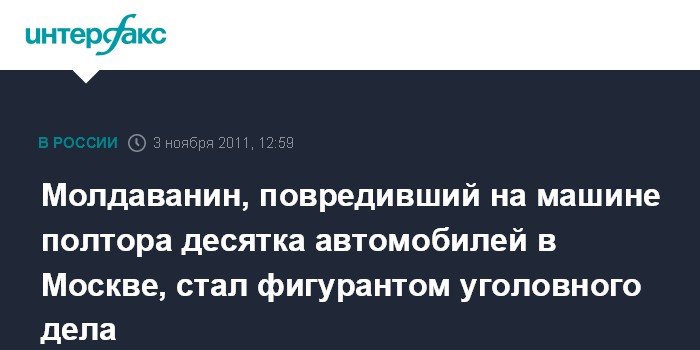 Москва. 3 ноября. INTERFAX.RU - В отношении гражданина Молдавии, который ранее на этой неделе разъезжал по Москве голым на автомобиле-такси и повредил около полутора десятков машин, возбуждено уголовное дело, сообщил "Интерфаксу" источник в правоохранительных органах.