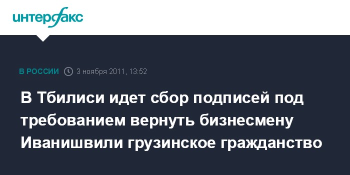 Тбилиси. 3 ноября. INTERFAX.RU - Представители нескольких грузинских неправительственных организаций в четверг начали в Тбилиси сбор подписей населения под требованием к властям вернуть гражданство Грузии бизнесмену Бидзине Иванишвили.