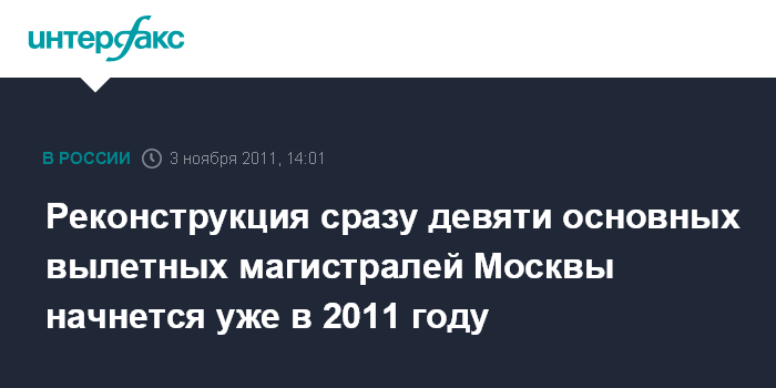 Реконструкция сразу девяти основных вылетных магистралей Москвы начнется уже в 2011 году