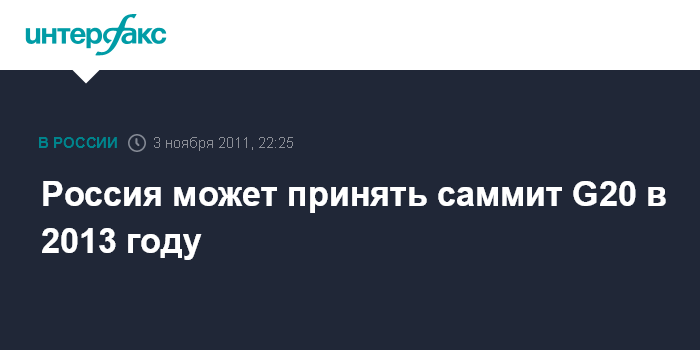 Канн. 3 ноября. INTERFAX.RU - Саммит "двадцатки" в 2013 году может пройти в России, заявил в четверг президент РФ Дмитрий Медведев на встрече с руководителями профсоюзных центров, участниками "профсоюзного саммита G20".