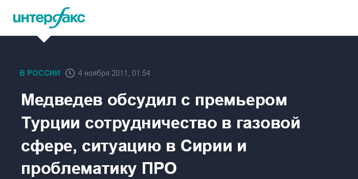 Кроме того, Д.Медведев и Р.Эрдоган обсудили ситуацию на Ближнем Востоке, в частности, в Сирии, а также проблематику ПРО.