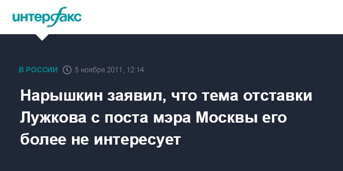 Нарышкин заявил, что тема отставки Лужкова с поста мэра Москвы его более не интересует