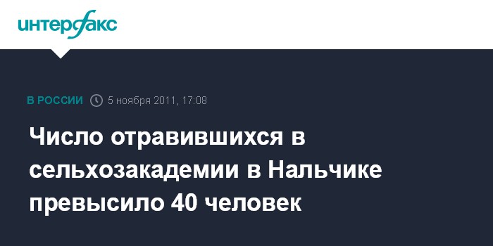 Как сообщалось ранее, 27 октября все госпитализированные обедали в столовой одного из факультетов Кабардино-Балкарской государственной сельскохозяйственной академии. Они ели салаты и гамбургеры, в состав которых входили консервированные огурцы домашнего приготовления. Больные стали поступать в клинику 29 октября.