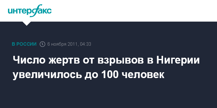 Лондон. 6 ноября. ИНТЕРФАКС - Число погибших в результате серии взрывов и нападений на северо-западе Нигерии возросло до 100 человек, сообщает британская телерадиовещательная корпорация Би-би-си в воскресенье.