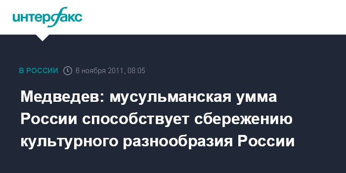 Медведев: мусульманская умма России способствует сбережению культурного разнообразия России