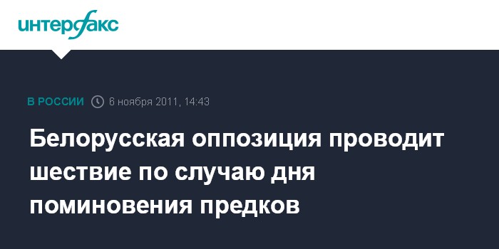 Минск. 6 ноября. INTERFAX.RU - Белорусская оппозиционная партия КХП-БНФ проводит в Минске шествие по случаю дня поминовения предков "Дзяды". Разрешенное городскими властями шествие завершится у памятного креста в Лошицком яру, где состоится митинг. По сообщениям белорусских интернет-ресурсов, в шествии участвуют около 100 человек - членов КХП-БНФ и других оппозиционных организаций.
