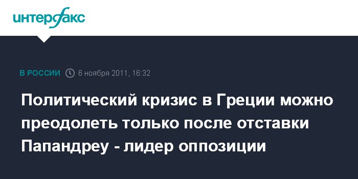 Политический кризис в Греции можно преодолеть только после отставки Папандреу - лидер оппозиции