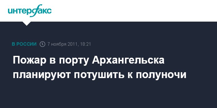 Москва. 7 ноября. INTERFAX.RU - Пожар в речном порту Архангельска может быть ликвидирован к концу дня, распространение огня удалось остановить, сообщил в понедельник "Интерфаксу" источник в противопожарных службах региона.