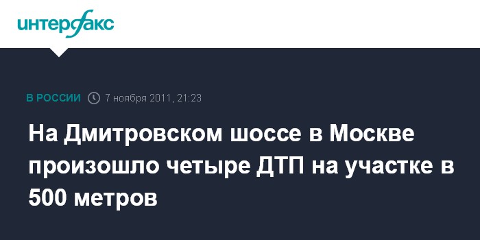 Москва.7 ноября. INTERFAX.RU - Восемь автомобилей попали в ДТП на 500-метровом участке Дмитровского шоссе, сообщил "Интерфаксу" источник в правоохранительных органах в понедельник.