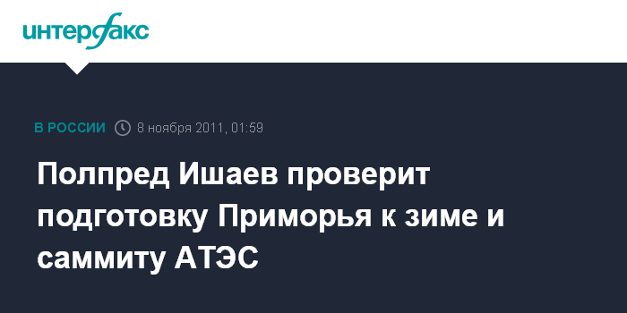 Полпред Ишаев проверит подготовку Приморья к зиме и саммиту АТЭС