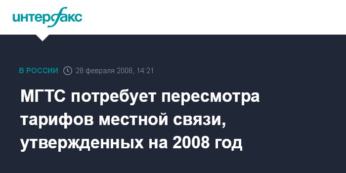 МГТС потребует пересмотра тарифов местной связи, утвержденных на 2008 год