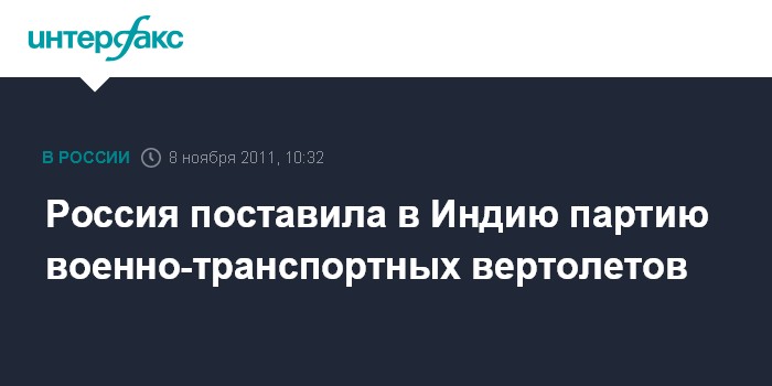 Москва. 8 ноября. INTERFAX.RU - Первая партия российских военно-транспортных вертолетов Ми-15В-5 передана Индии в соответствии с контрактом, заключенным ОАО "Рособоронэкспорт" в 2008 году, сообщает пресс-служба ОАО.