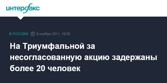 "Сотрудники полиции задержали на Триумфальной площади за попытку проведения акции, несогласованной с органами исполнительной власти города, более 20 человек", - сказали в пресс-службе. По словам собеседника агентства, в настоящее время с задержанными проводятся процессуальные действия в соответствии с законодательством РФ.