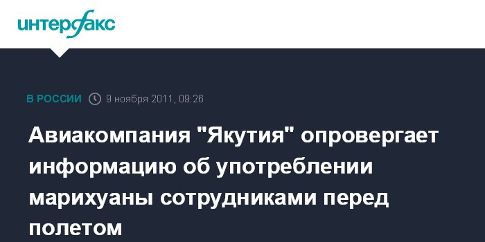 Москва. 9 ноября. INTERFAX.RU – Авиакомпания "Якутия" заявила, что сообщения об уличении экипажа рейса ЯК-758 в употреблении марихуаны в аэропорту Магадана на медицинском контроле перед вылетом не соответствуют действительности.