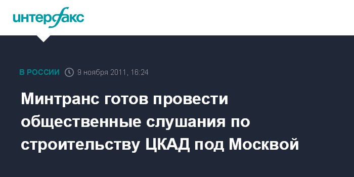 Горно-Алтайск. 9 ноября. INTERFAX.RU - Министерство транспорта РФ готово провести общественные слушания по проекту строительства Центральной кольцевой дороги (ЦКАД) под Москвой, сообщил министр транспорта Игорь Левитин журналистам в Горно-Алтайске в среду. "Мы приступаем к крупному инфраструктурному проекту - ЦКАД под Москвой. Это центральная кольцевая дорога длиной около 500 км. Мы готовы показать, по какой стоимости продается земля, какие необходимы выносы коммуникаций, будем проводить общественные слушания. Мы к этому готовы. Нам нечего скрывать", - сказал Левитин.