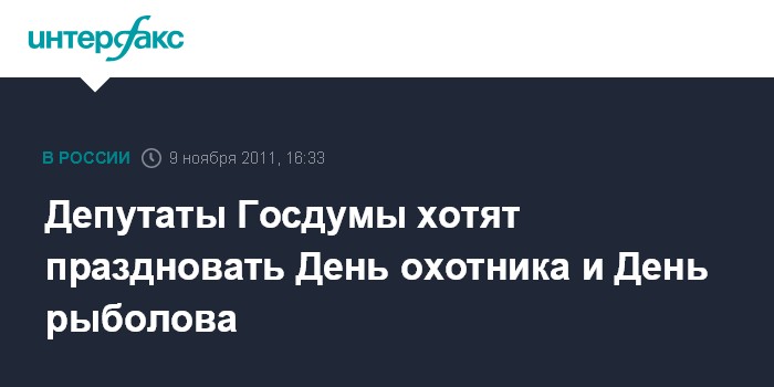 Москва. 9 ноября. INTERFAX.RU - В Госдуме подготовлен проект обращения к президенту РФ Дмитрию Медведеву с предложением установить в России две новые праздничные даты - День охотника и День рыболова