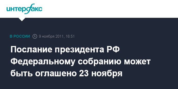 Послание президента РФ Федеральному собранию может быть оглашено 23 ноября