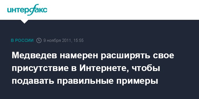 "Интернет интересен тем, что для меня как для президента, для огромного количества других людей, я все оттуда получаю без фильтра. Иногда это неприятно, иногда очень интересно. Но в любом случае показательно. Вообще власть должна искать в Сети сторонников, чтобы быть современной и актуальной. Если она таких сторонников не имеет, то, скорее всего, между властью и значительной частью людей образуется разрыв. Это плохо. Я стараюсь в этом плане подавать пример", - сказал Д.Медведев.