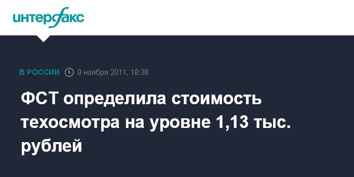 ФСТ определила стоимость техосмотра на уровне 1,13 тыс. рублей