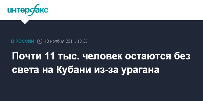 Почти 11 тыс. человек остаются без света на Кубани из-за урагана