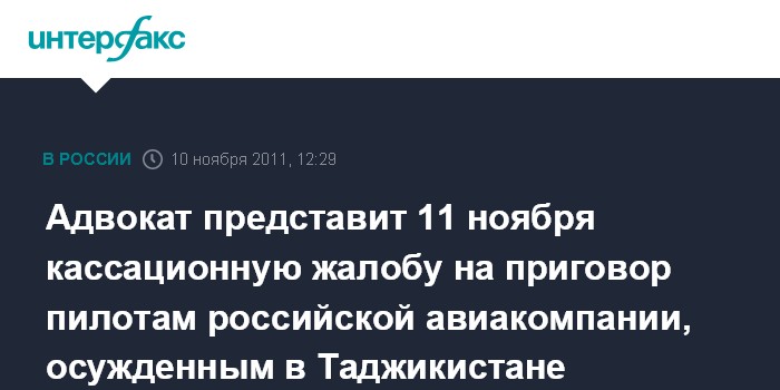 Адвокат представит 11 ноября кассационную жалобу на приговор пилотам российской авиакомпании, осужденным в Таджикистане