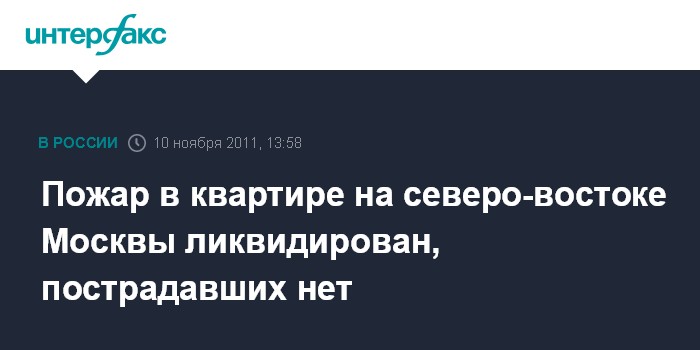 Пожар в квартире на северо-востоке Москвы ликвидирован, пострадавших нет
