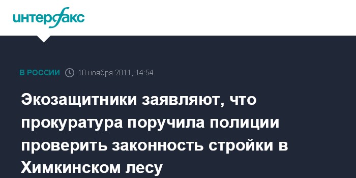 Экозащитники заявляют, что прокуратура поручила полиции проверить законность стройки в Химкинском лесу