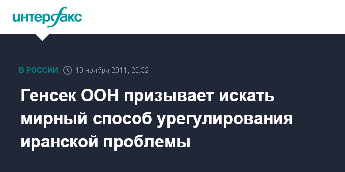 Нью-Йорк (ООН). 10 ноября. INTERFAX.RU - Международному сообществу следует искать мирный способ урегулирования иранской ядерной проблемы и воздержаться от применения силы, заявил в четверг представитель генсека ООН Пан Ги Муна Мартин Несирки.