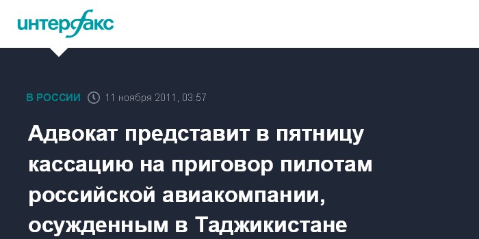 Адвокат представит в пятницу кассацию на приговор пилотам российской авиакомпании, осужденным в Таджикистане