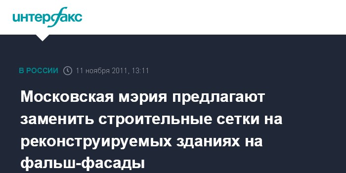 Москва. 11 ноября. INTERFAX.RU - Строительные сетки, закрывающие фасады реконструируемых зданий в центре Москвы, зачастую висят под предлогом рекламы, считает глава департамента СМИ и рекламы столицы Владимир Черников.
