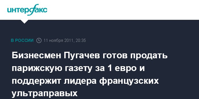 Бизнесмен Пугачев готов продать парижскую газету за 1 евро и поддержит лидера французских ультраправых