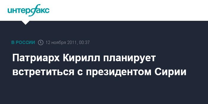Патриарх Кирилл планирует встретиться с президентом Сирии