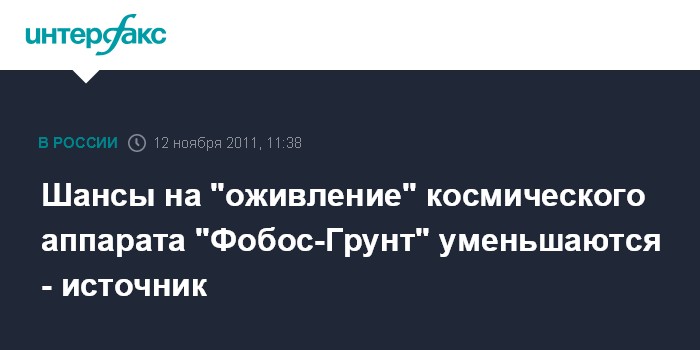 Шансы на "оживление" космического аппарата "Фобос-Грунт" уменьшаются - источник