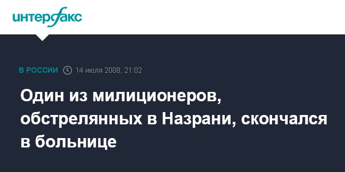 Назрань. 14 июля. ИНТЕРФАКС-ЮГ - Один из раненых сотрудников УБОП МВД Ингушетии в результате обстрела в понедельник днем в муниципальном округе Плиево Назрани от полученных ранений скончался в больнице.
