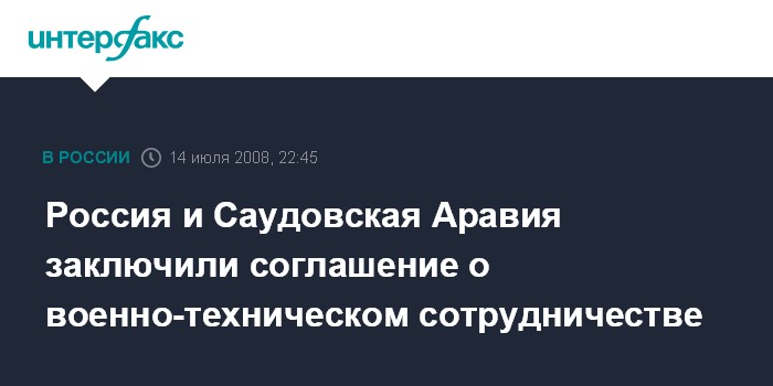 Москва. 14 июля. ИНТЕРФАКС - Соглашение о военно-техническом сотрудничестве (ВТС) между Россией и Саудовской Аравией подписано в понедельник вечером в Москве.