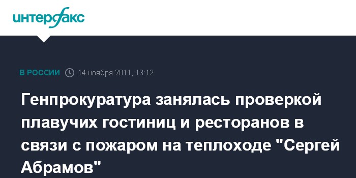 Генпрокуратура занялась проверкой плавучих гостиниц и ресторанов в связи с пожаром на теплоходе "Сергей Абрамов"