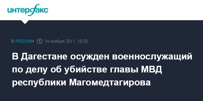 В Дагестане осужден военнослужащий по делу об убийстве главы МВД республики Магомедтагирова