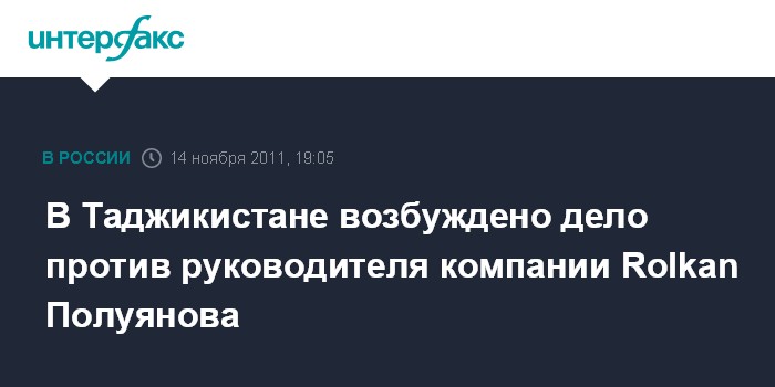 В Таджикистане возбуждено дело против руководителя компании Rolkan Полуянова