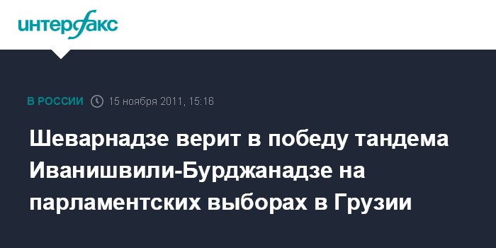Тбилиси. 15 ноября. INTERFAX.RU - Экс-президент Грузии Эдуард Шеварднадзе не сомневается, что на предстоящих в 2012 г. парламентских выборах оппозиционная коалиция, возглавляемая бизнесменом Бидзиной Иванишвили, одержит убедительную победу.