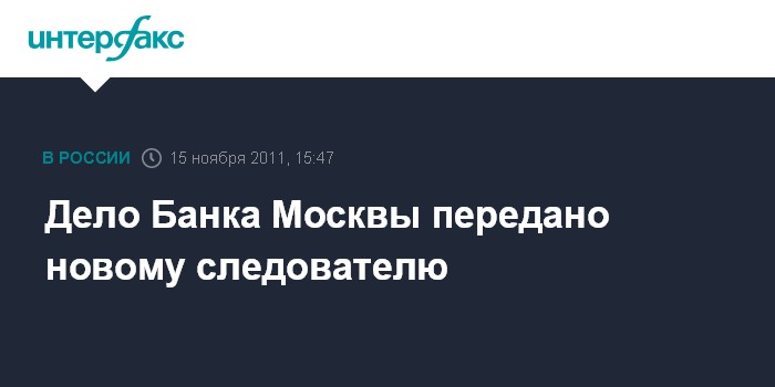 Москва. 15 ноября. INTERFAX.RU - Дело Банка Москвы, в рамках которого во вторник был допрошен бывший мэр столицы Юрий Лужков, передано другому следователю, сообщил журналистам адвокат Генри Резник, представляющий интересы экс-градоначальника.