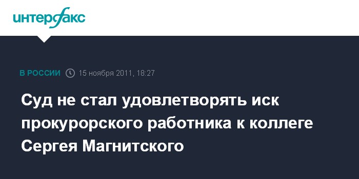 Суд не стал удовлетворять иск прокурорского работника к коллеге Сергея Магнитского