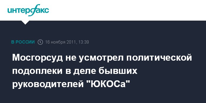 Москва. 16 ноября. INTERFAX.RU - Мосгорсуд в надзорном постановлении по жалобе адвокатов экс-главы "ЮКОСа" Михаила Ходорковского и бывшего руководителя МФО "МЕНАТЕП" Платона Лебедева усомнился в политической мотивированности дела и назвал второй приговор обоснованным и объективным.