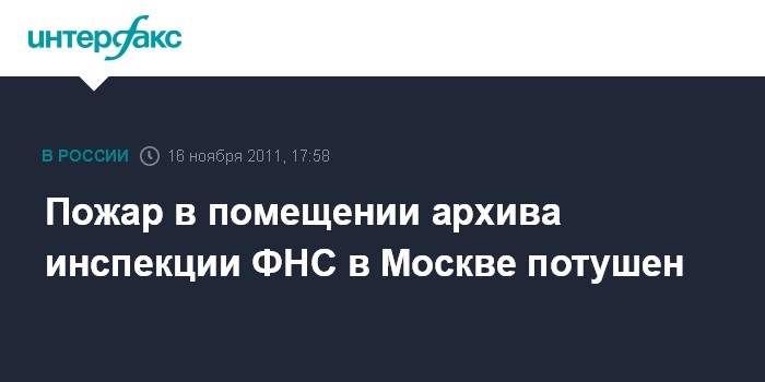 Источник "Интерфакса" уточнил, что пожар происходил в архиве инспекции Федеральной налоговой службы N24.
