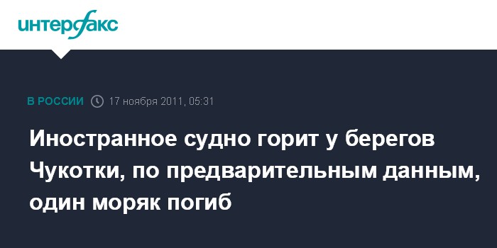Иностранное судно горит у берегов Чукотки, по предварительным данным, один моряк погиб