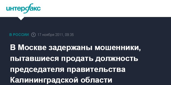 В Москве задержаны мошенники, пытавшиеся продать должность председателя правительства Калининградской области